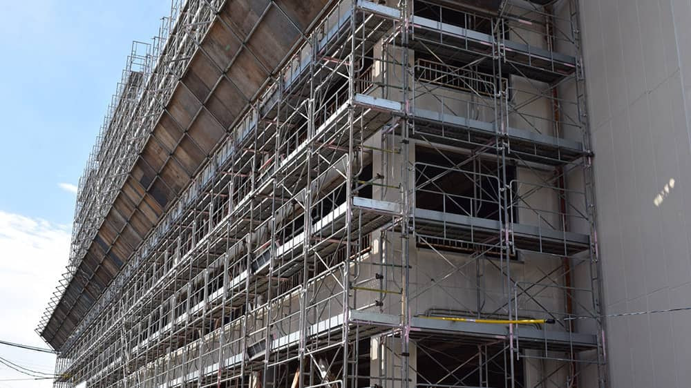 とび工事、ひき工事、足場等仮設工事、重量物のクレーン等による揚重運搬配置工事、鉄骨組立て工事、コンクリートブロック据付け工事、工作物解体工事、くい工事、くい打ち工事、くい抜き工事、場所打ぐい工事、土工事、掘削工事、根切り工事、発破工事、盛土工事など、足場の組立て、機械器具・建設資材等の重量物の運搬配置、鉄骨等の組立て、工作物の解体等を行う工事を行います。