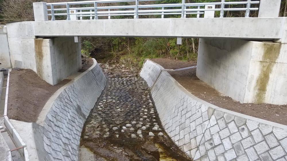 ダム建設工事(砂防ダム工事、貯水池ダム工事など)、トンネル工事、橋梁工事、空港建設工事、道路工事(道路開設や道路改良工事など)、土地区画整理工事や土地造成工事、公道下の下水道工事、農業土木工事(灌漑水道工事や農用造成工事など)、砂防工事、森林土木工事(治山工事や林道工事など)、河川工事、海岸工事など、様々な大規模工事を行います。